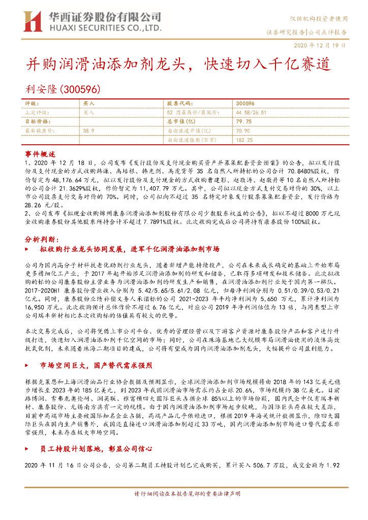 华西证券:利安隆(300596)-并购润滑油添加剂龙头,快速切入千亿赛道.pdf