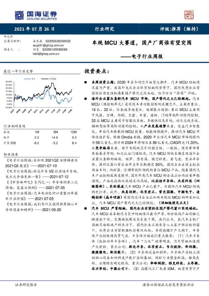 国海证券:电子行业周报:车规MCU大赛道,国产厂商谁有望突围.pdf