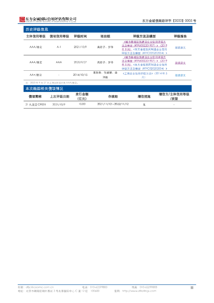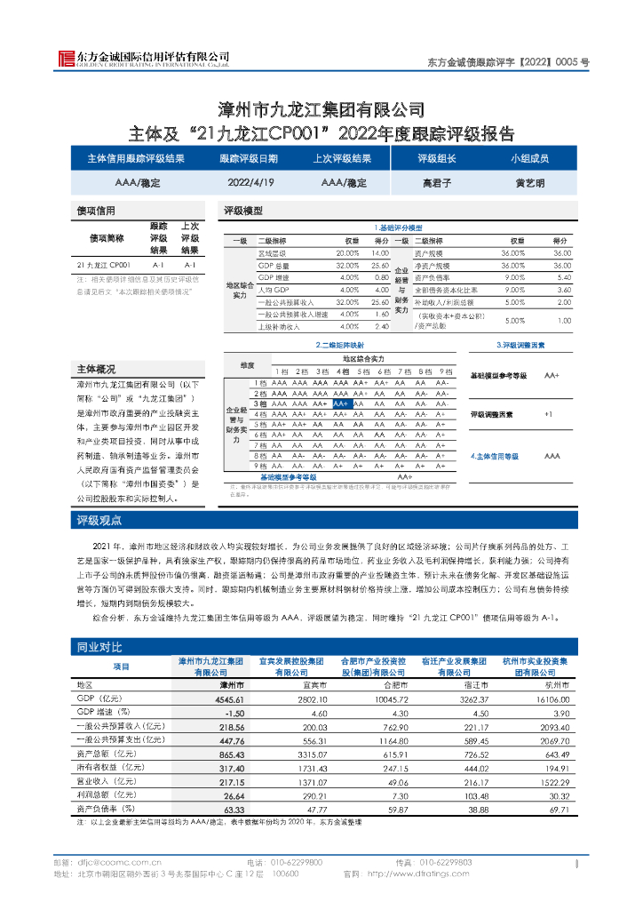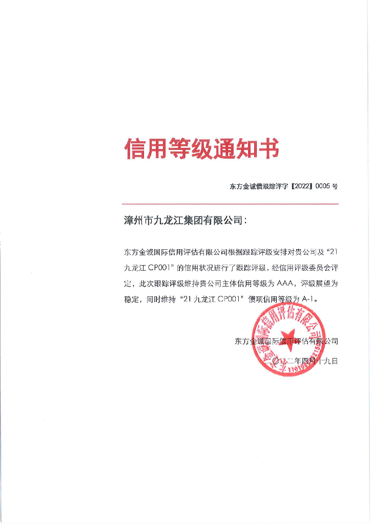 东方金诚:漳州市九龙江集团有限公司主体及“21九龙江CP001”2022年度跟踪评级报告.pdf