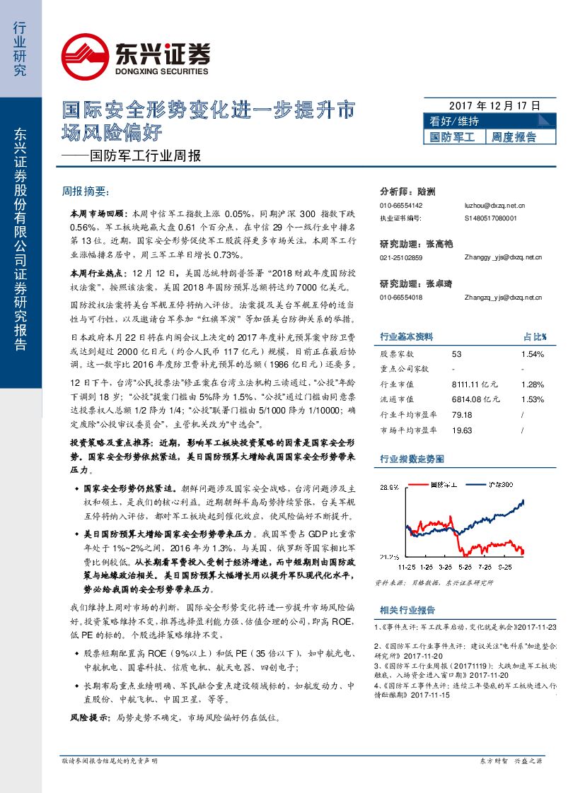 东兴证券:国防军工行业周报:国际安全形势变化进一步提升市场风险偏好.pdf