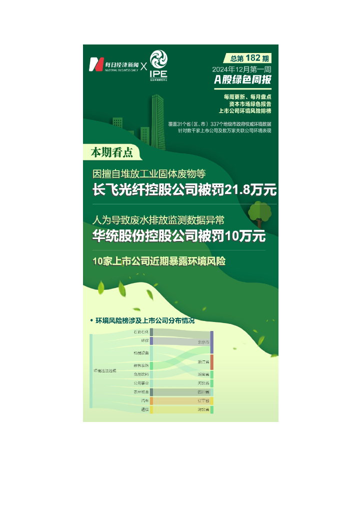 A股绿色周报(2024年12月第一周 总第182期):10家上市公司暴露环境风险 长飞光纤、华统股份控股公司被罚.pdf