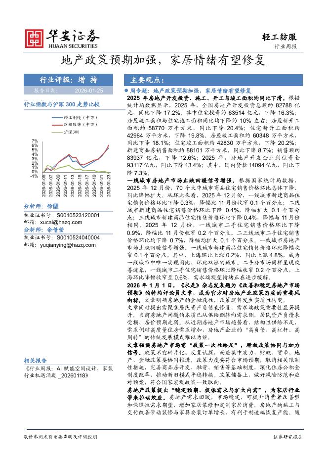 华安证券:轻工纺服行业周报:地产政策预期加强,家居情绪有望修复.pdf