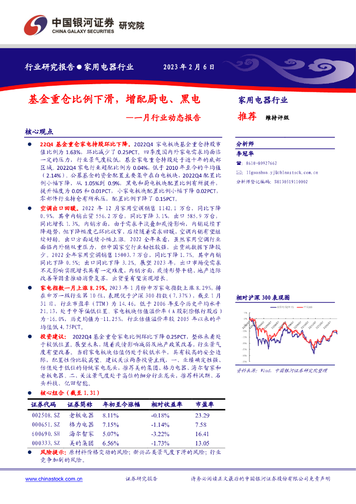 中国银河:家用电器一月行业动态报告:基金重仓比例下滑,增配厨电、黑电.pdf