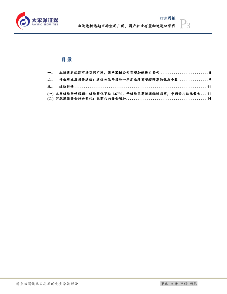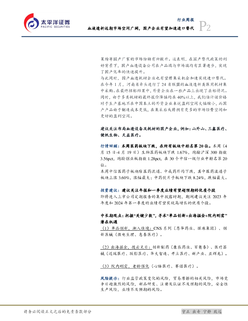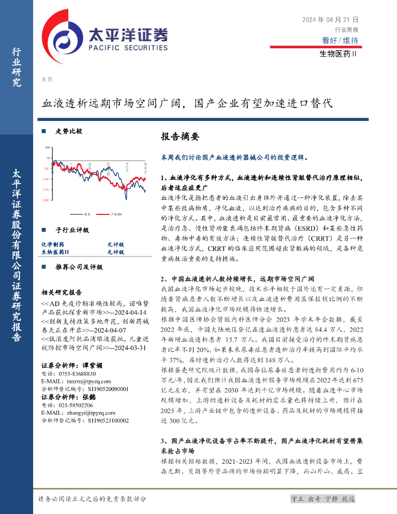 太平洋证券:生物医药Ⅱ行业周报:血液透析远期市场空间广阔,国产企业有望加速进口替代.pdf