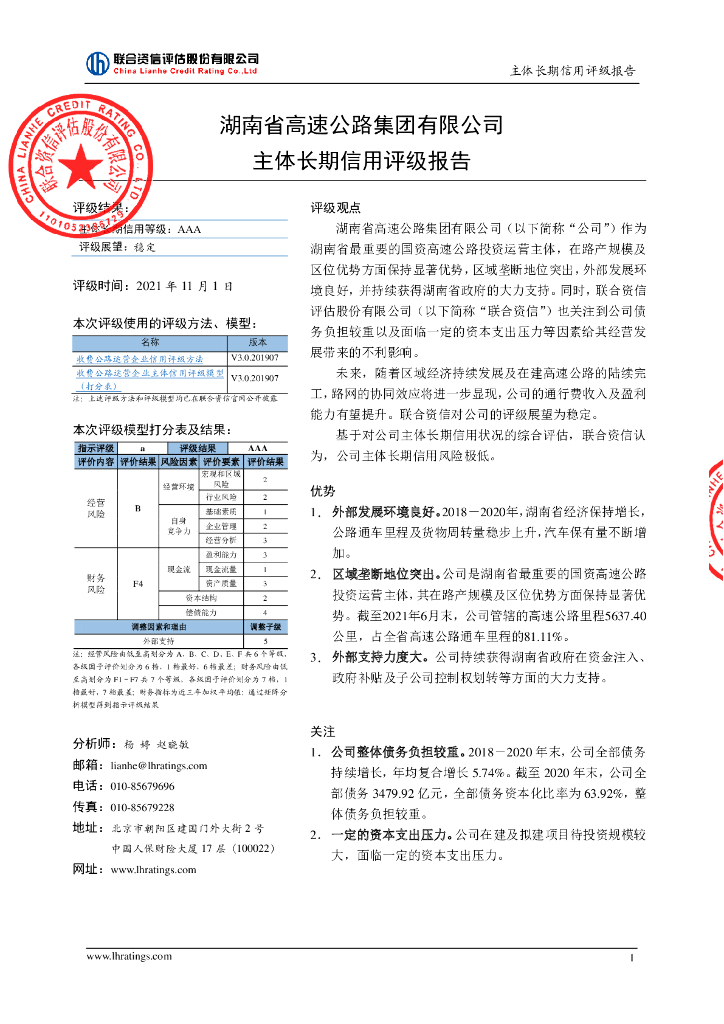 联合资信:湖南省高速公路集团有限公司主体信用评级报告.pdf