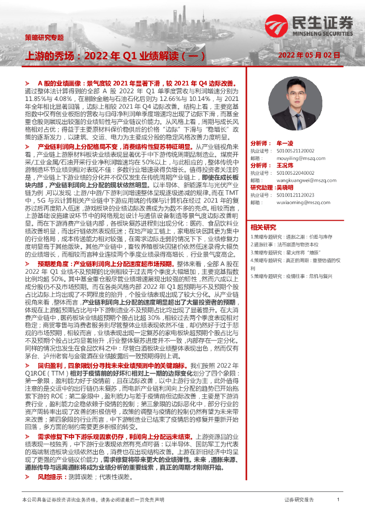 民生证券:策略研究专题:上游的秀场:2022年Q1业绩解读(一).pdf