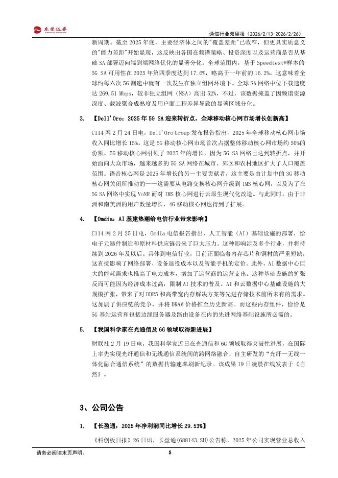 东莞证券:通信行业双周报:5GSA发展进入拐点.pdf