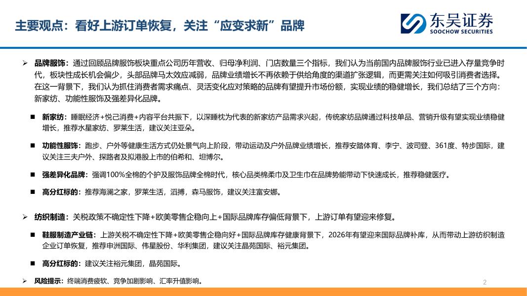 东吴证券:纺服行业2026年度策略:看好上游订单恢复,关注“应变求新”品牌.pdf