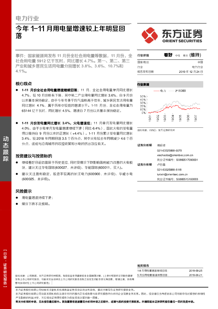 东方证券:电力行业:今年1-11月用电量增速较上年明显回落.pdf