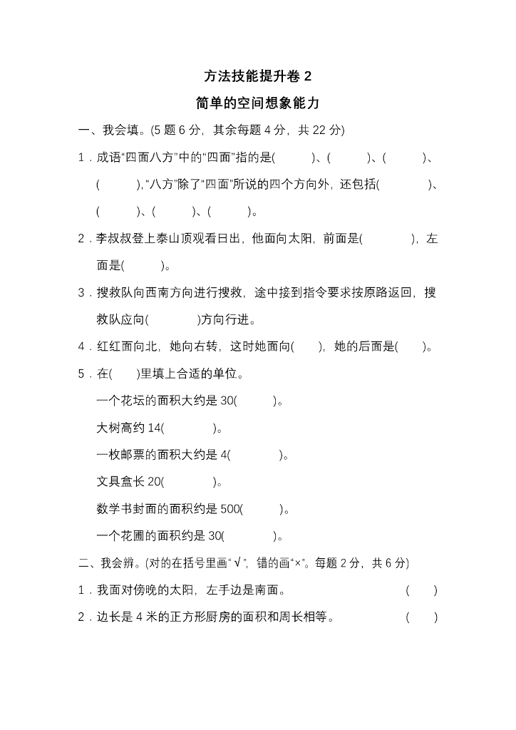 人教三(下)期末冲刺卷2 简单的空间想象能力.pdf