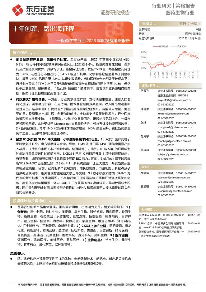 东方证券:医药生物行业2026年度投资策略报告——十年创新,踏出海征程.pdf