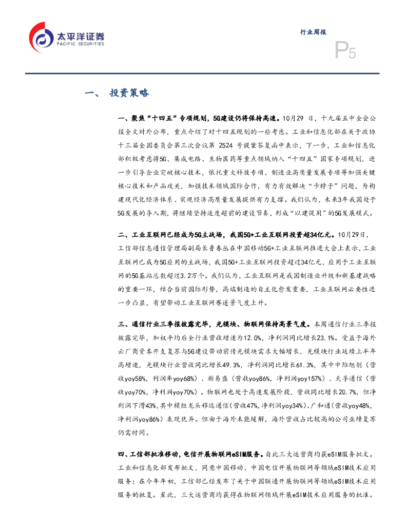 太平洋证券:通信行业周报:聚焦“十四五”专项规划,5G+工业互联网有望加速.pdf