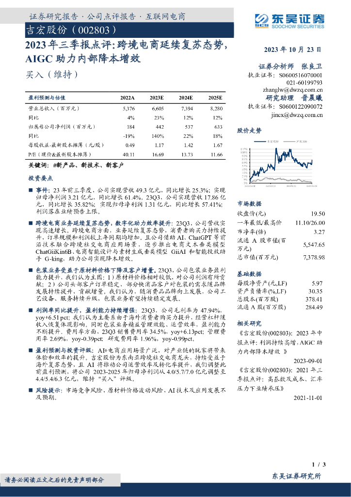 东吴证券:吉宏股份(002803)-2023年三季报点评:跨境电商延续复苏态势,AIGC助力内部降本增效.pdf
