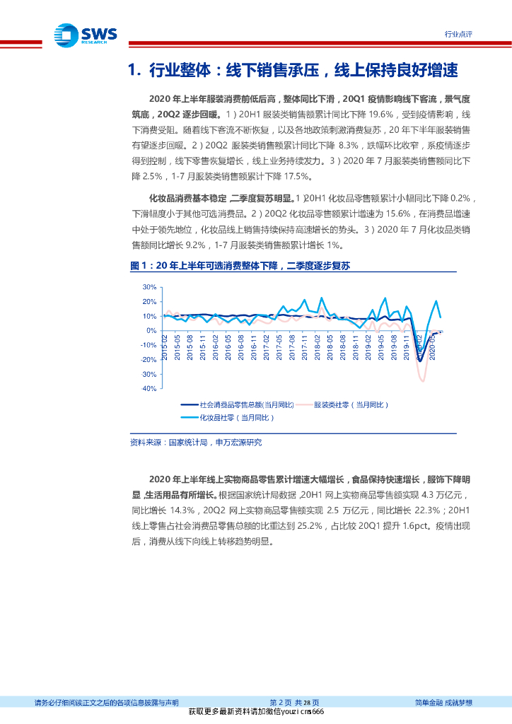 申万宏源:纺织服装及化妆品行业2020年半年报回顾:消费逐步回暖,Q2线上持续提速增长.pdf