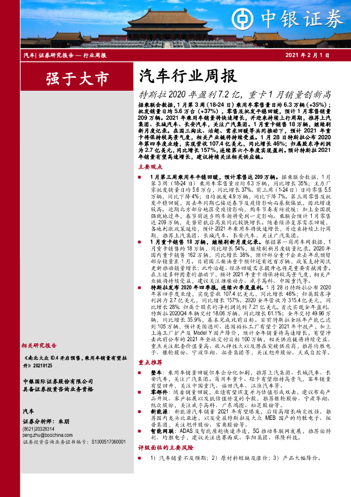 中银证券:汽车行业周报:特斯拉2020年盈利7.2亿,重卡1月销量创新高.pdf