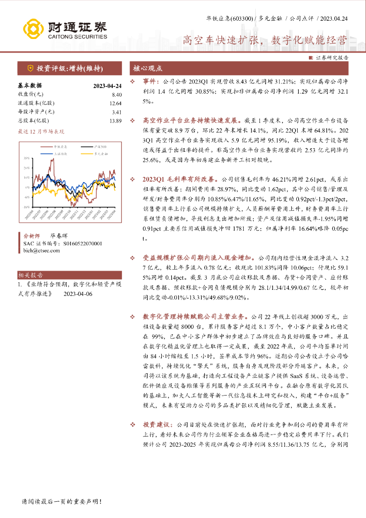 财通证券:华铁应急(603300)-高空车快速扩张,数字化赋能经营.pdf