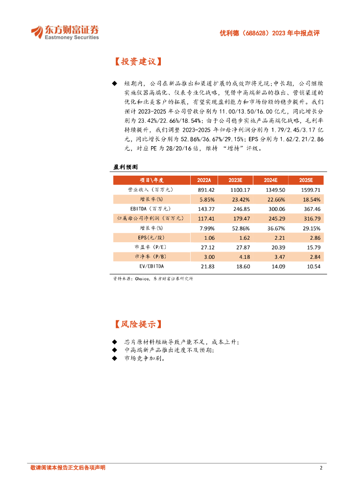 东方财富证券:优利德(688628)-2023年中报点评:Q2净利润增速超预期,仪器仪表高端化持续推进.pdf