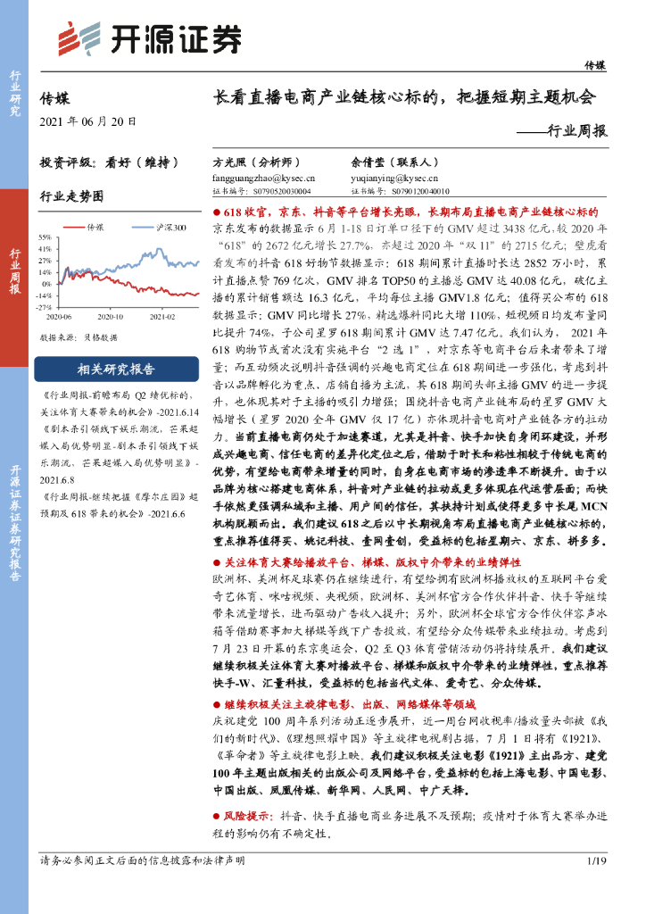 开源证券:传媒行业周报:长看直播电商产业链核心标的,把握短期主题机会.pdf