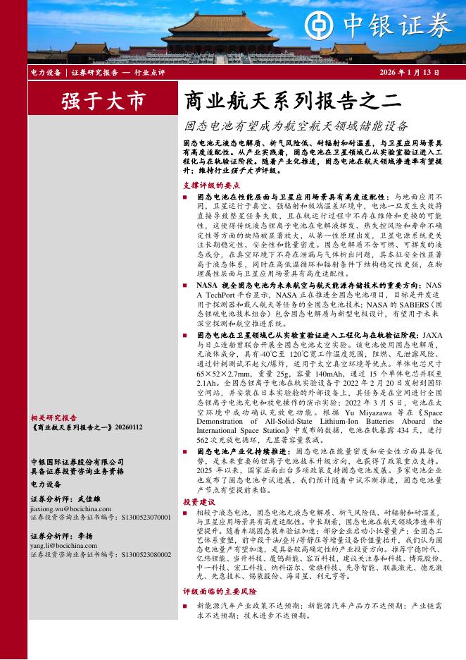 中银证券:商业航天系列报告之二:固态电池有望成为航空航天领域储能设备.pdf