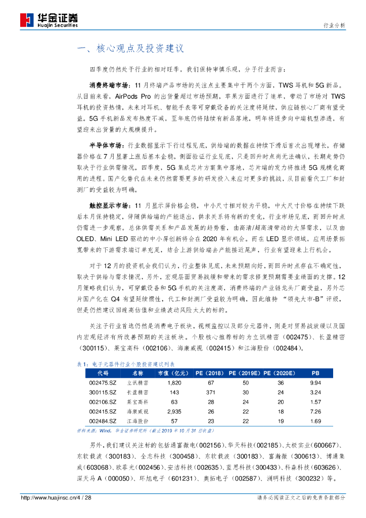 华金证券:电子元器件行业分析:2019年11月:数据显示行业见底,关注供需变化情况.pdf