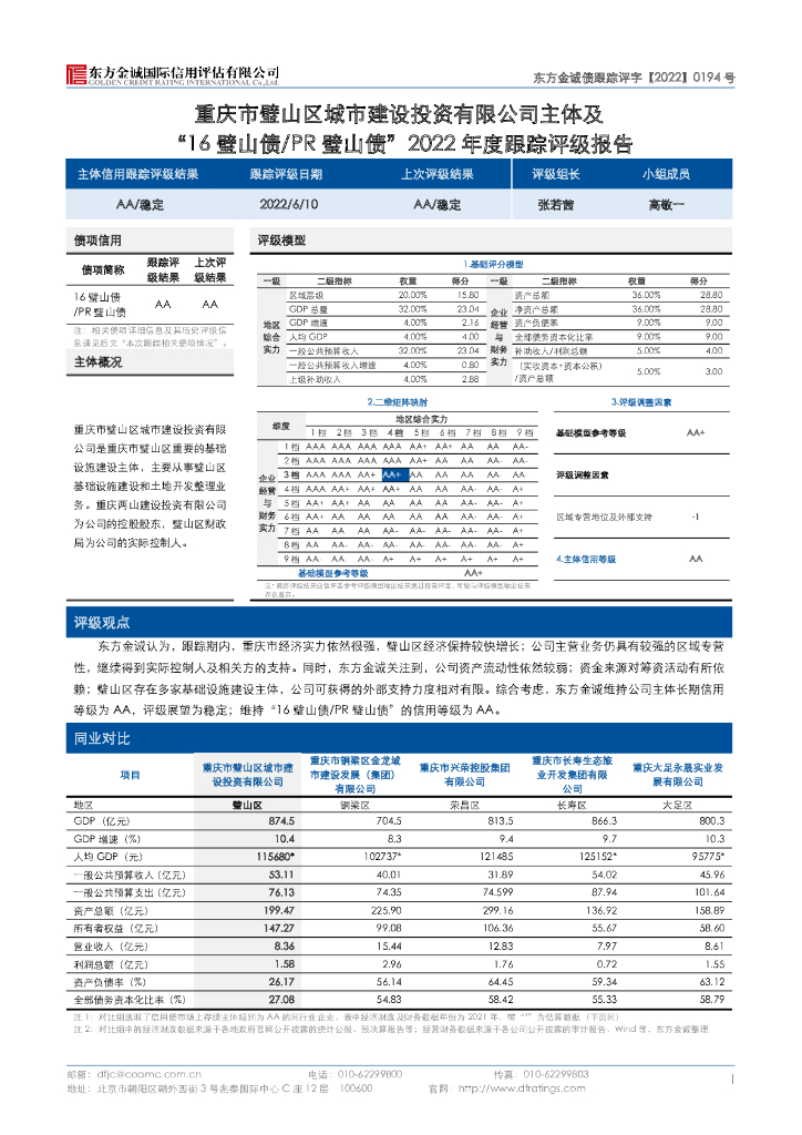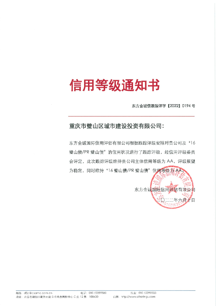 东方金诚:重庆市璧山区城市建设投资有限公司主体及“16璧山债PR璧山债”2022年度跟踪评级报告.pdf