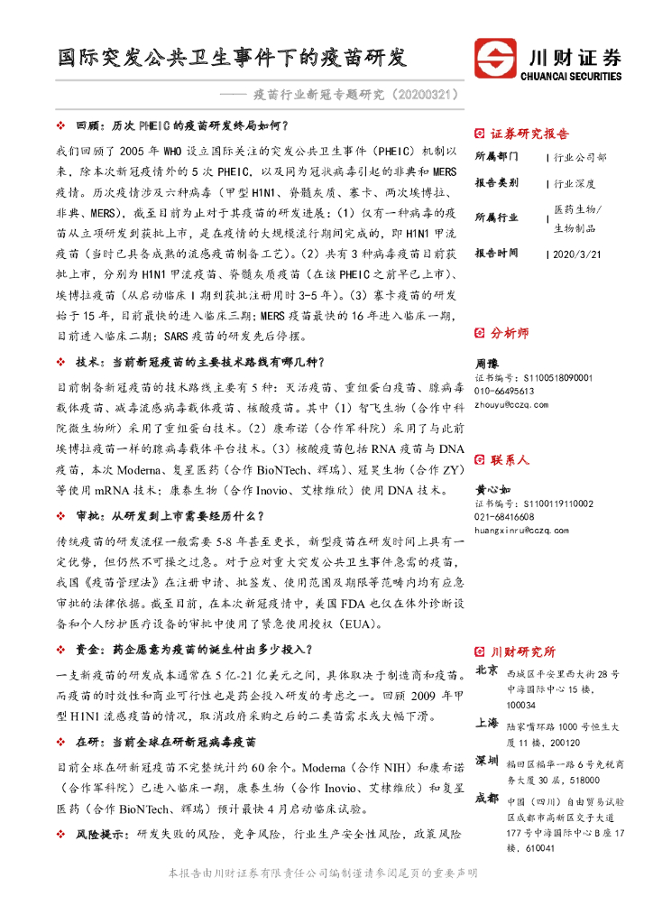 川财证券:疫苗行业新冠专题研究:国际突发公共卫生事件下的疫苗研发.pdf