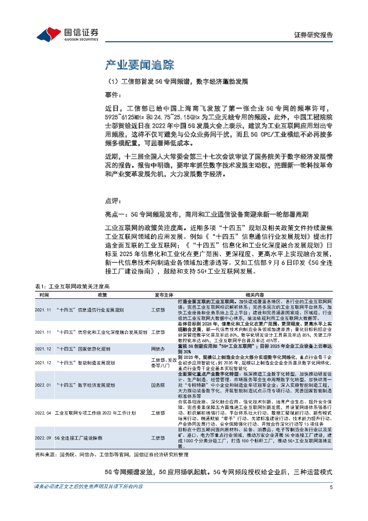 国信证券:通信行业周报2022年第31期:工信部首发5G专网频谱,工业互联网加速发展.pdf