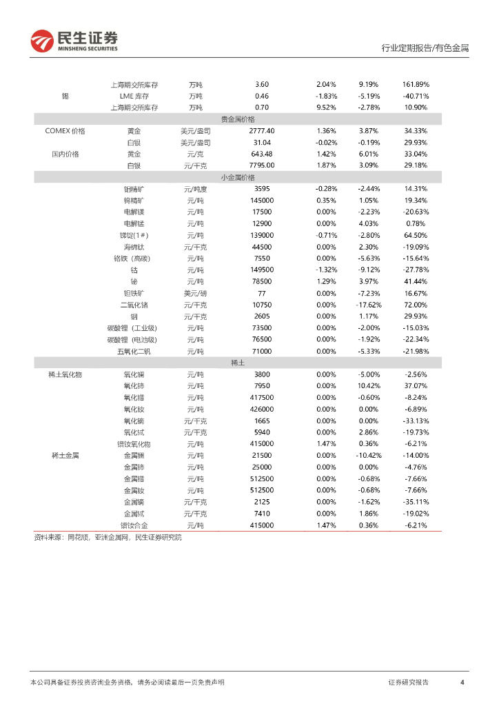 民生证券:有色金属周报:特朗普政策基调缓解市场担忧,金属价格震荡.pdf