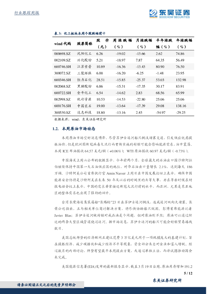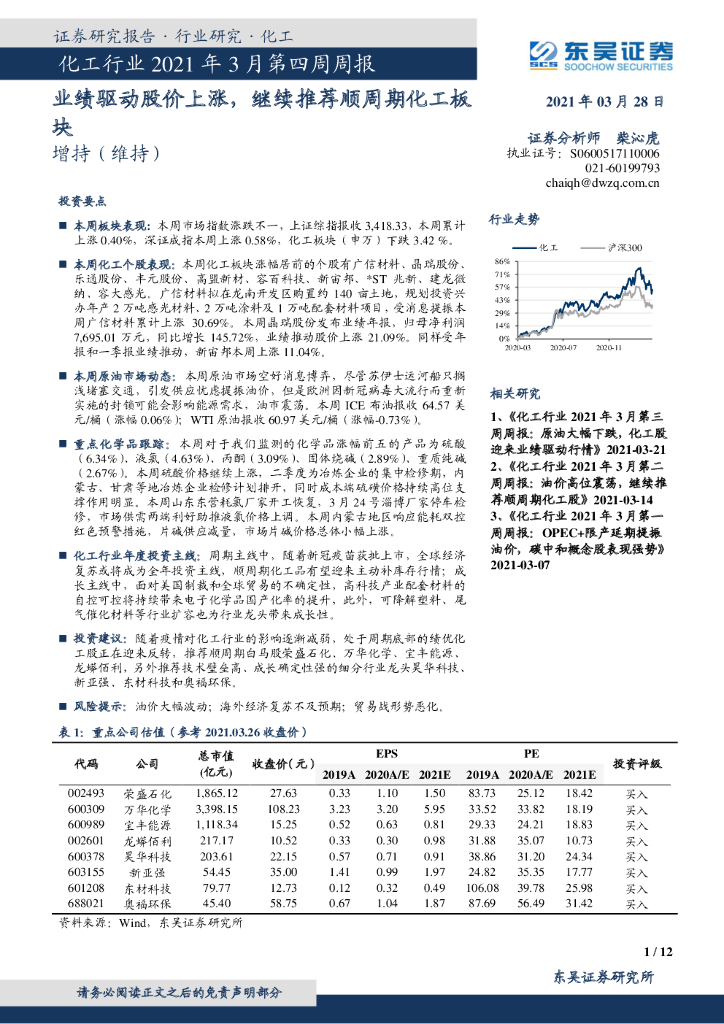 东吴证券:化工行业2021年3月第四周周报:业绩驱动股价上涨,继续推荐顺周期化工板块.pdf