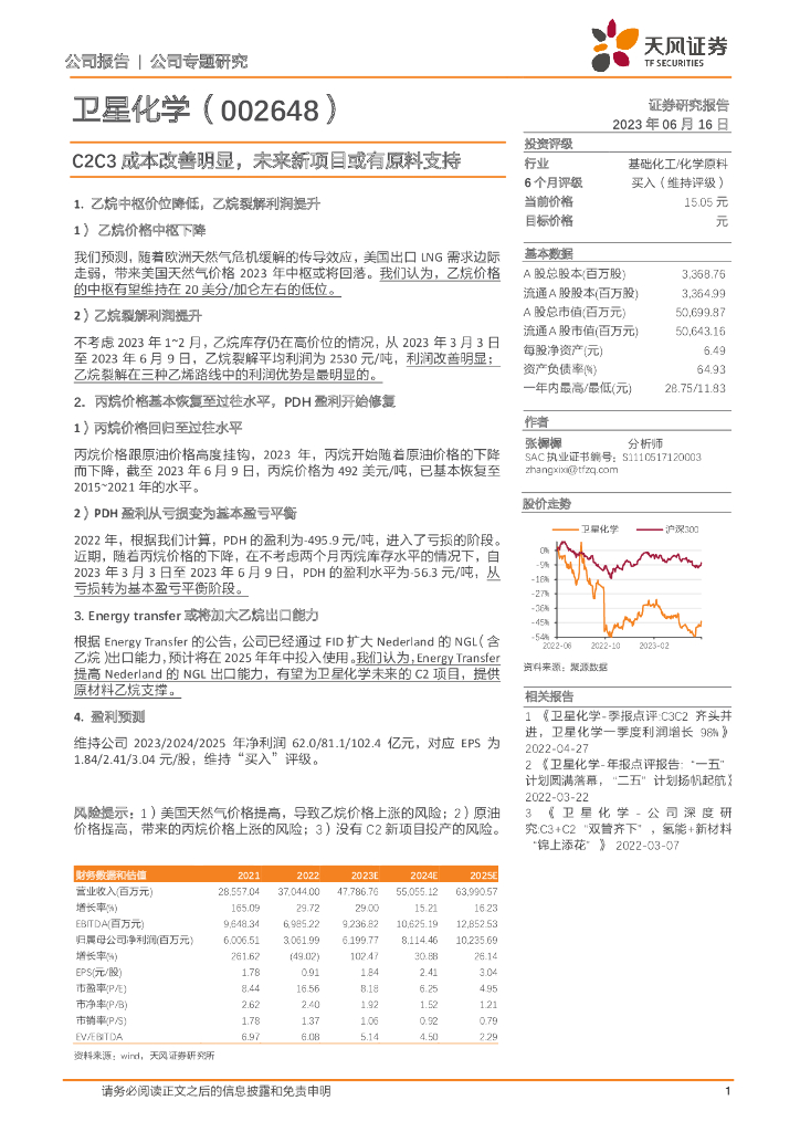 天风证券:卫星化学(002648)-C2C3成本改善明显,未来新项目或有原料支持.pdf