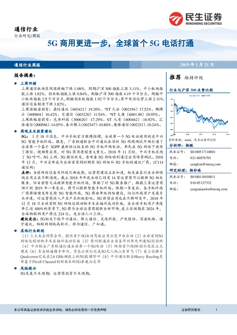 民生证券:通信行业周报:5G商用更进一步,全球首个5G电话打通.pdf