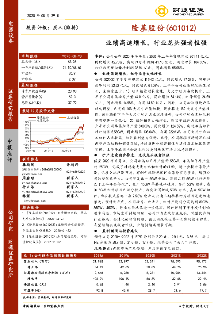 财通证券:隆基股份(601012)-业绩高速增长,行业龙头强者恒强.pdf