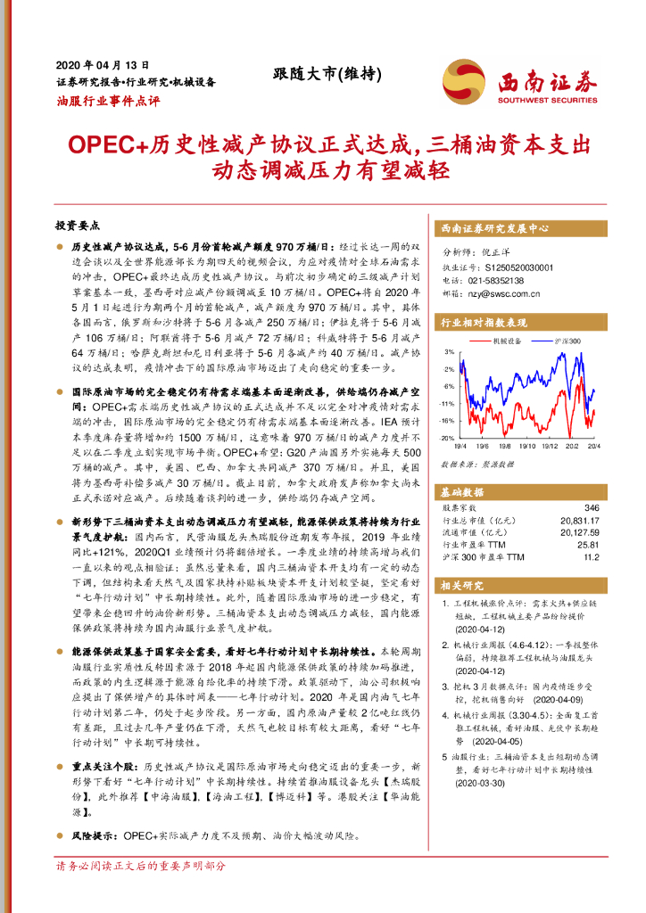 西南证券:油服行业事件点评:OPEC+历史性减产协议正式达成,三桶油资本支出动态调减压力有望减轻.pdf