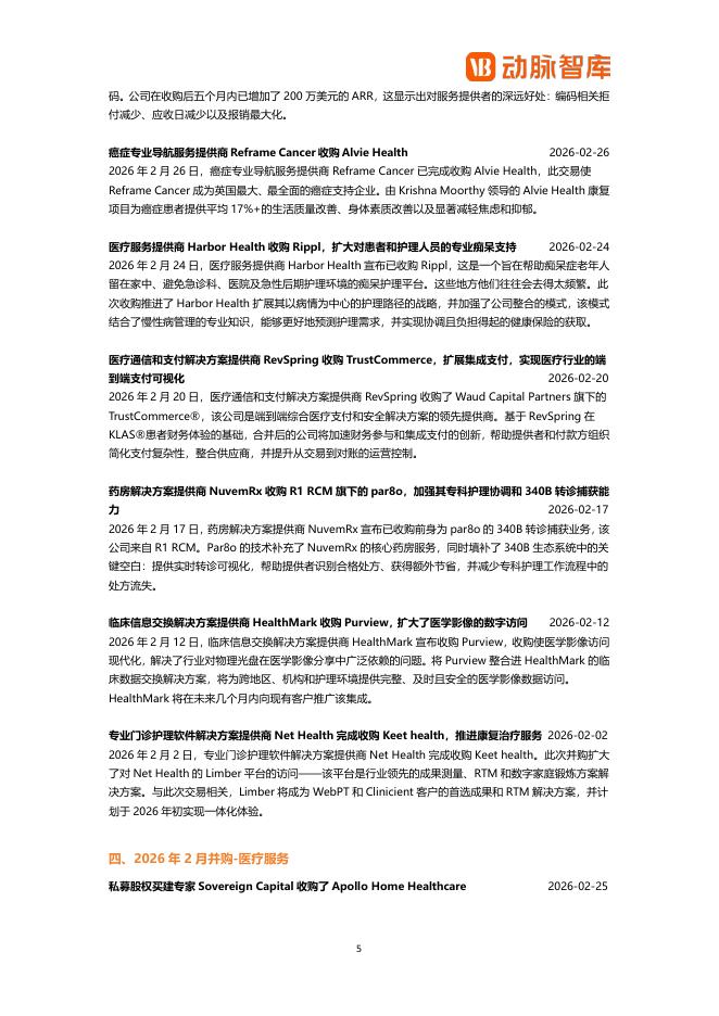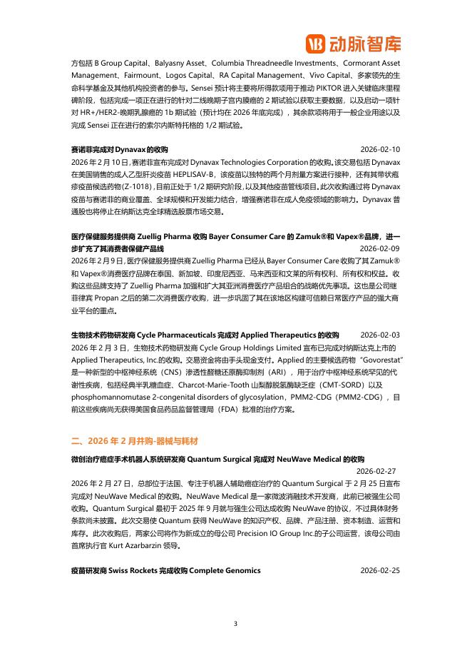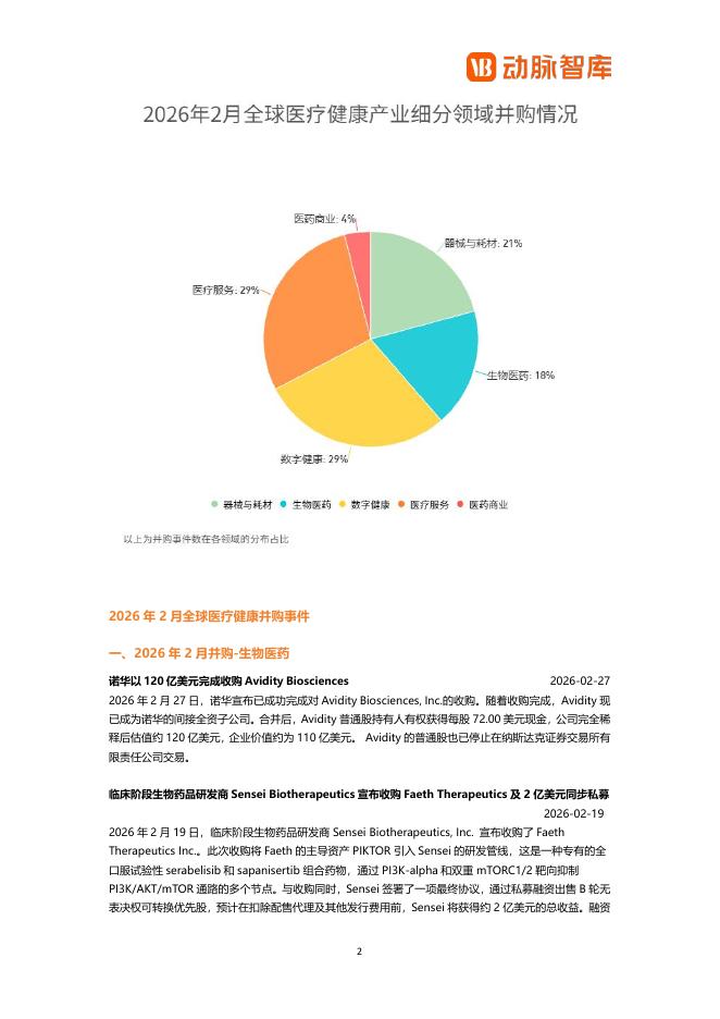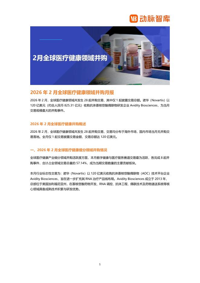 动脉橙:2026年2月全球医疗健康领域并购月报.pdf