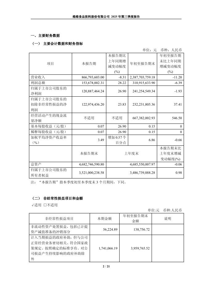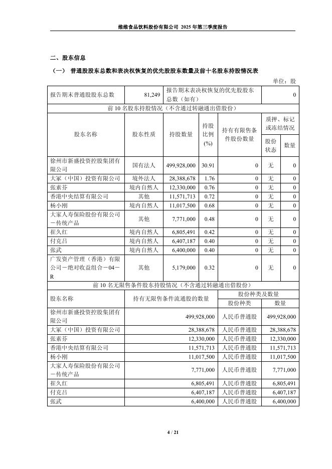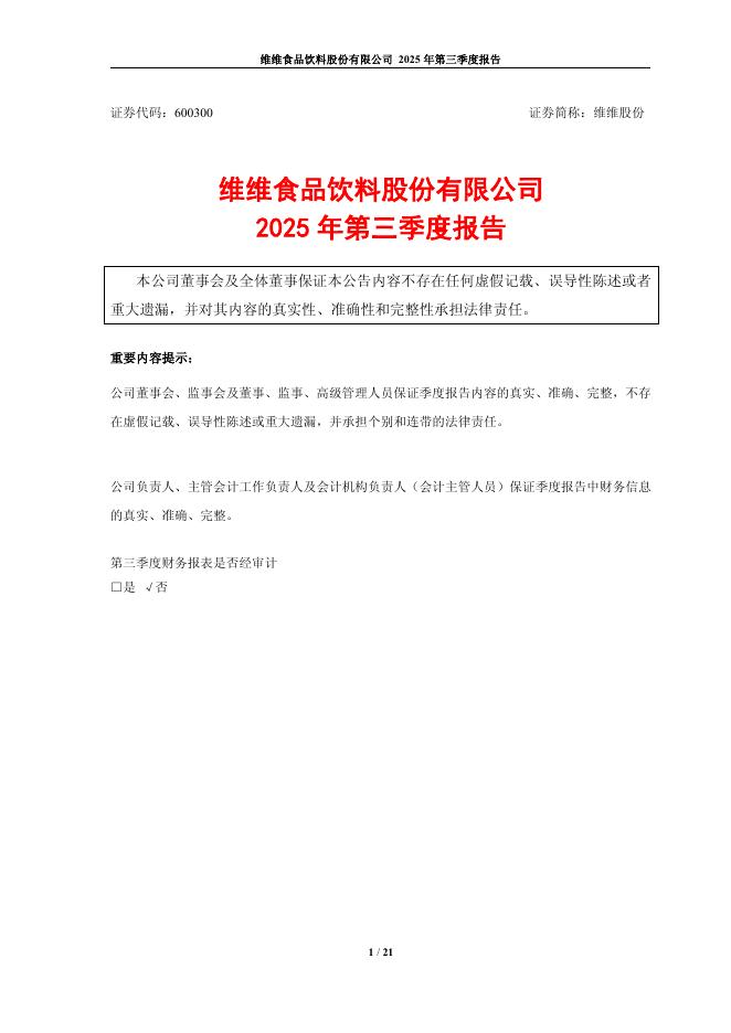 600300-维维股份:维维食品饮料股份有限公司2025年第三季度报告.pdf