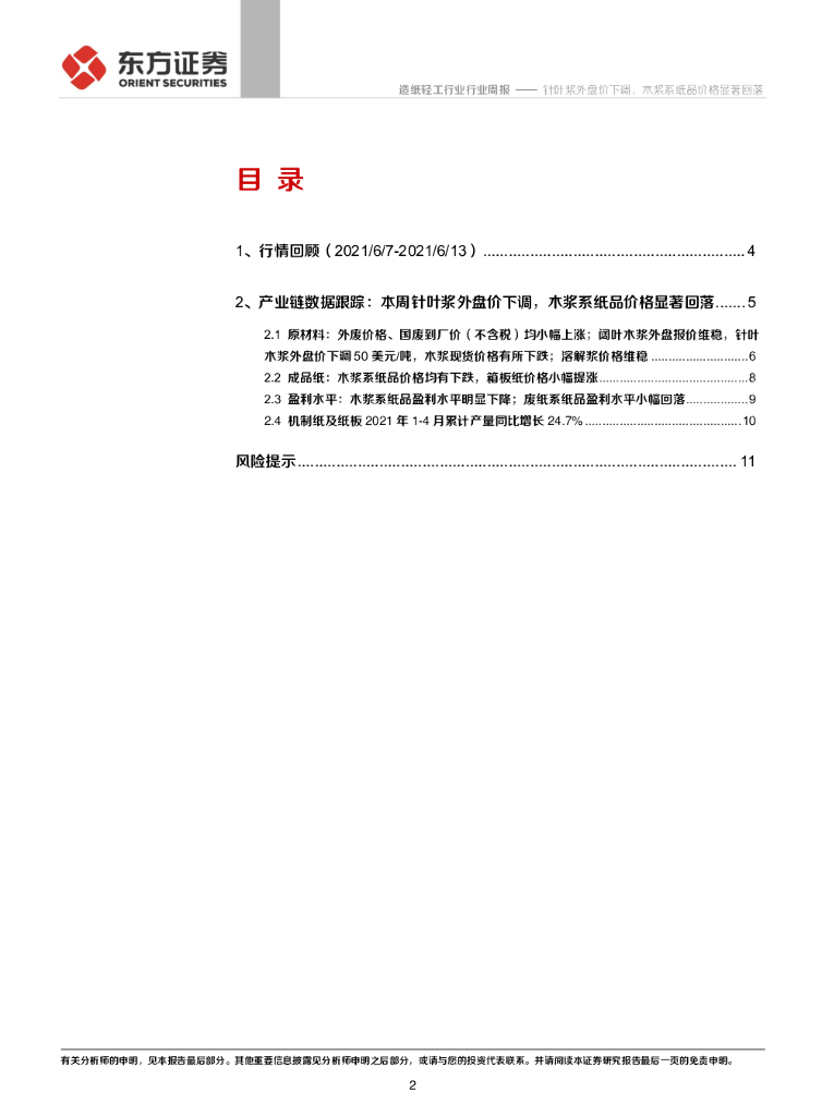 东方证券:造纸产业链数据每周速递:针叶浆外盘价下调,木浆系纸品价格显著回落.pdf