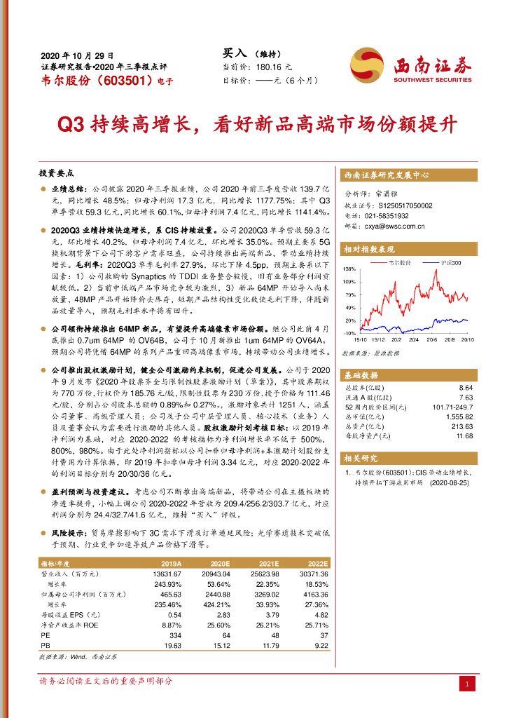 西南证券:韦尔股份(603501)-Q3持续高增长,看好新品高端市场份额提升.pdf