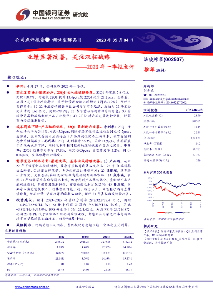 中国银河:涪陵榨菜(002507)-2023年一季报点评:业绩显著改善,关注双拓战略.pdf
