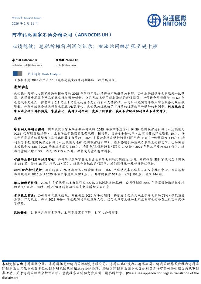 海通国际:阿布扎比国家石油分销公司:业绩稳健;息税折摊前利润创纪录;加油站网络扩张至超千座-260212.pdf