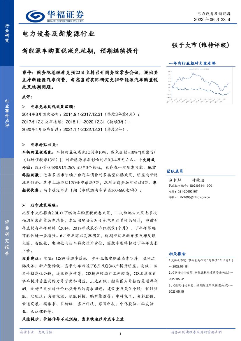 华福证券:电力设备及新能源行业事件点评:新能源车购置税减免延期,预期继续提升.pdf