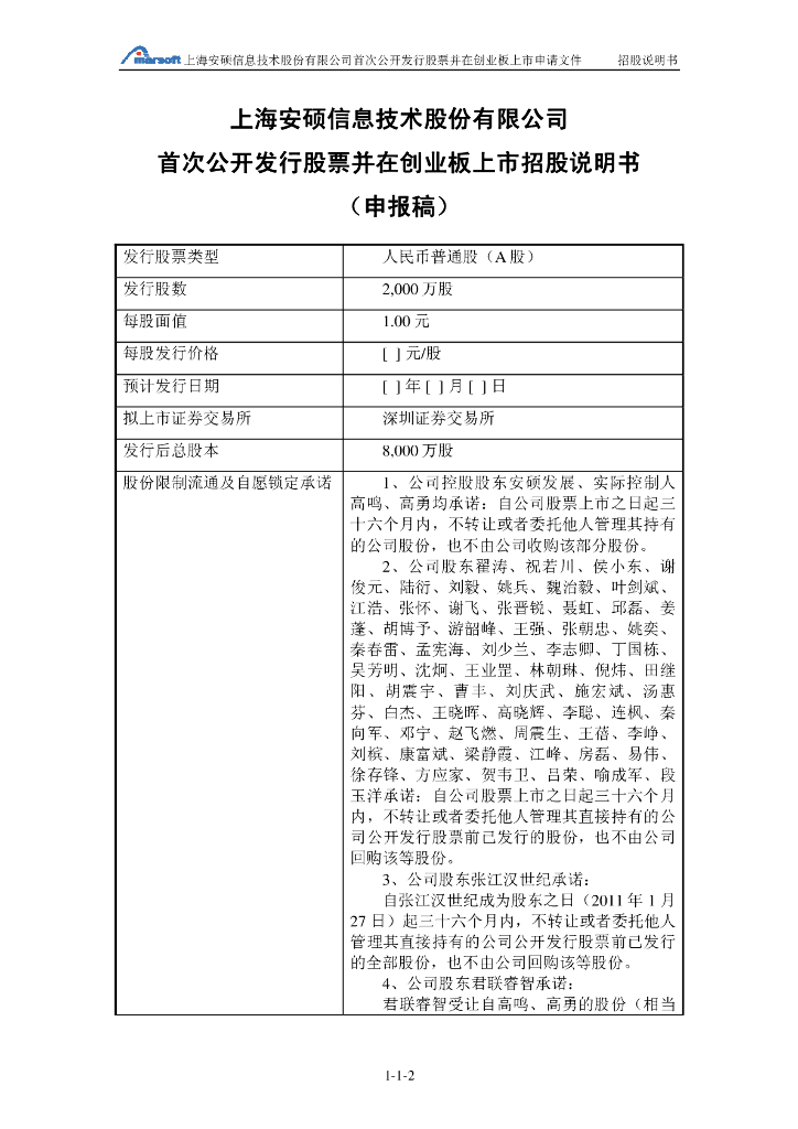 上海安硕信息技术股份有限公司深交所创业板IPO上市招股说明书.pdf