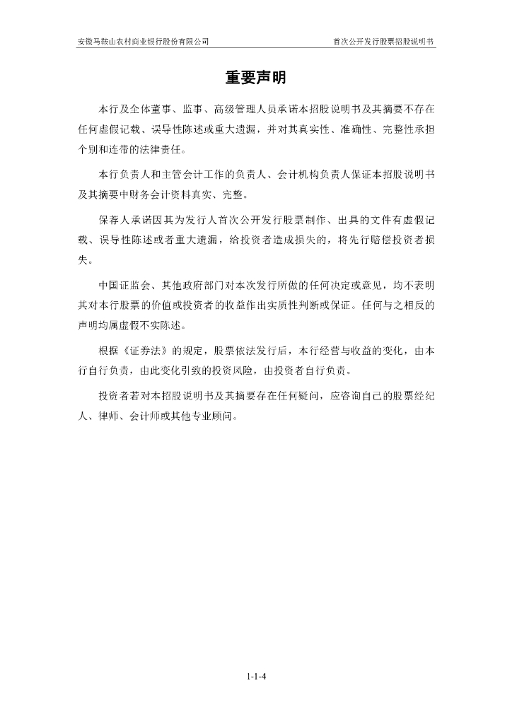 安徽马鞍山农村商业银行股份有限公司深交所主板IPO上市招股说明书.pdf