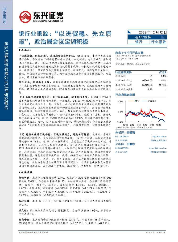 东兴证券:银行业跟踪:“以进促稳、先立后破”,政治局会议定调积极.pdf