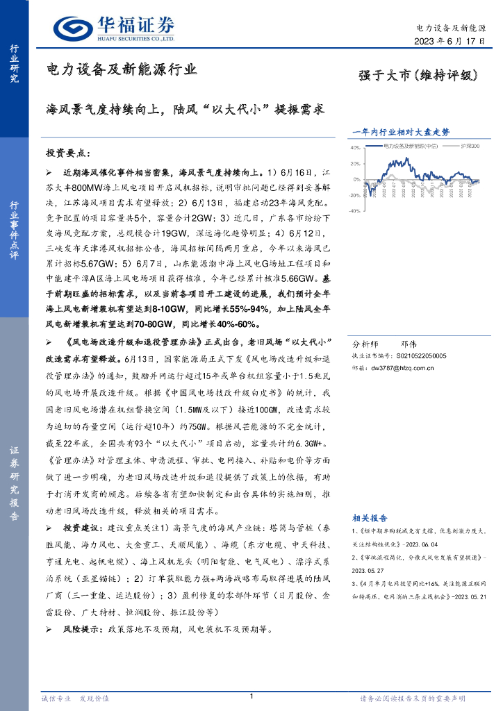 华福证券:电力设备及新能源行业:海风景气度持续向上,陆风“以大代小”提振需求.pdf