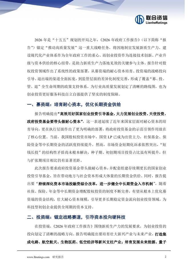 联合资信评估:《2026年政府工作报告》中股权投资领域相关内容解读:高效用好耐心资本、畅通退出循环-260403.pdf