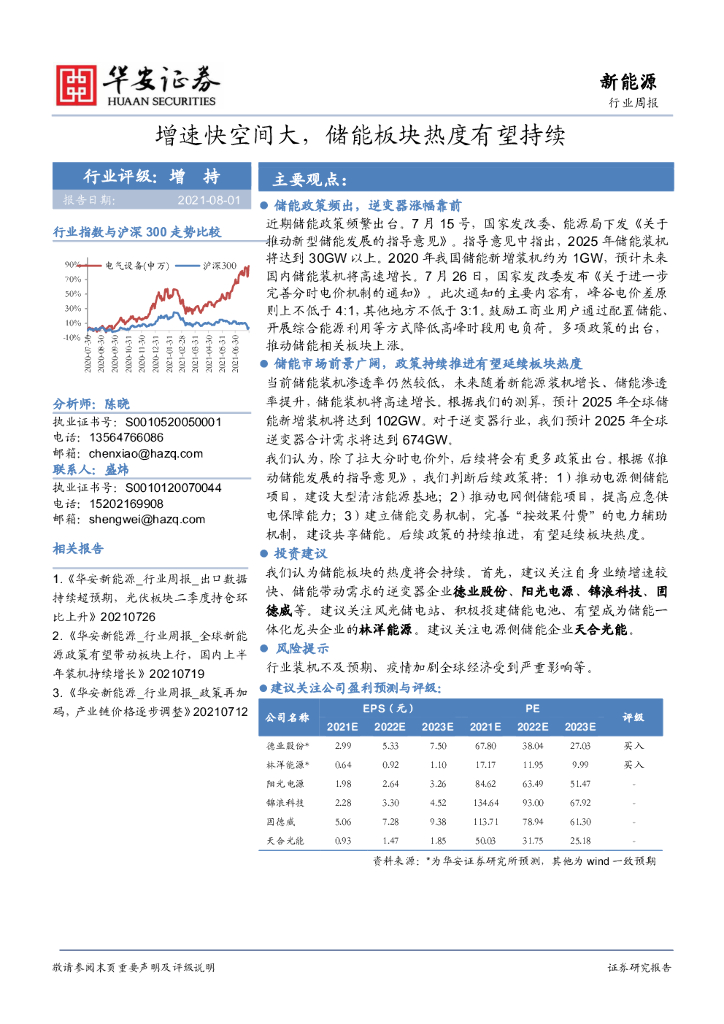 华安证券:新能源行业周报:增速快空间大,储能板块热度有望持续.pdf