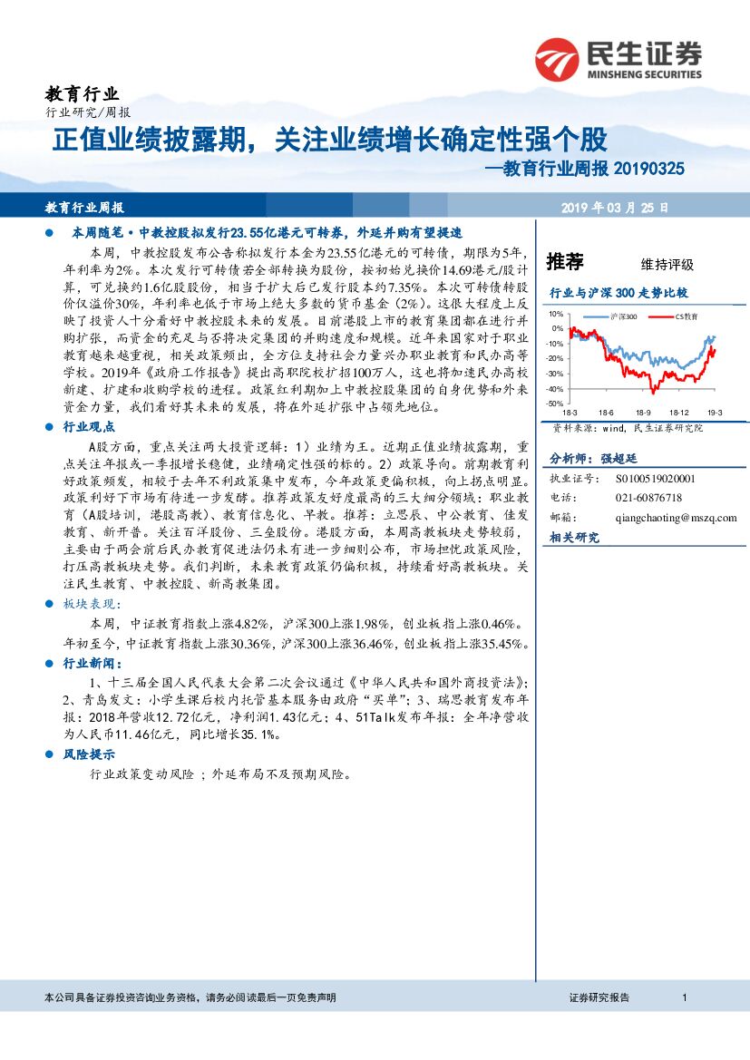民生证券:教育行业周报:正值业绩披露期,关注业绩增长确定性强个股.pdf
