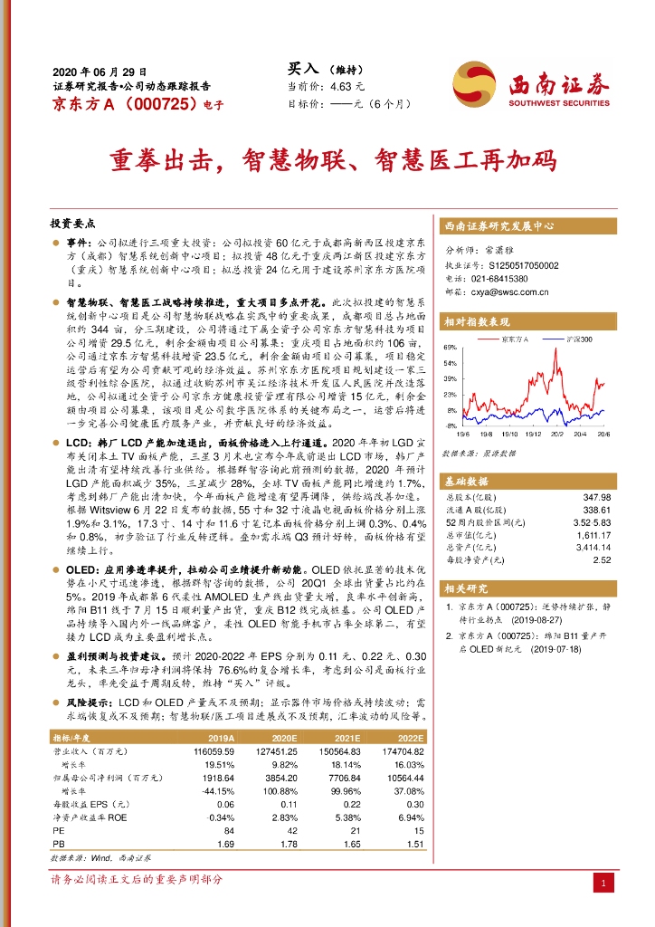 西南证券:京东方A(000725)-重拳出击,智慧物联、智慧医工再加码.pdf