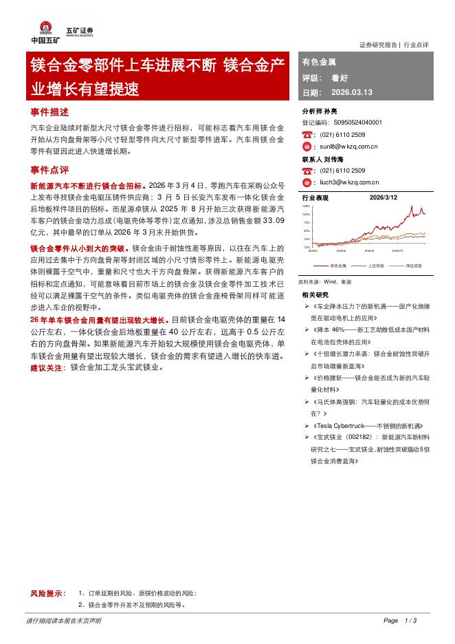 五矿证券:有色金属:镁合金零部件上车进展不断镁合金产业增长有望提速.pdf