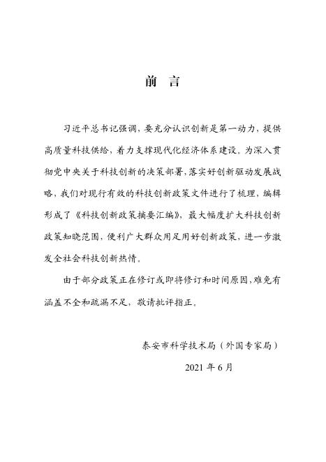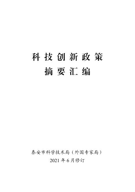 泰安市科学技术局(外国专家局):科技创新政策摘要汇编(2021年6月修订).pdf